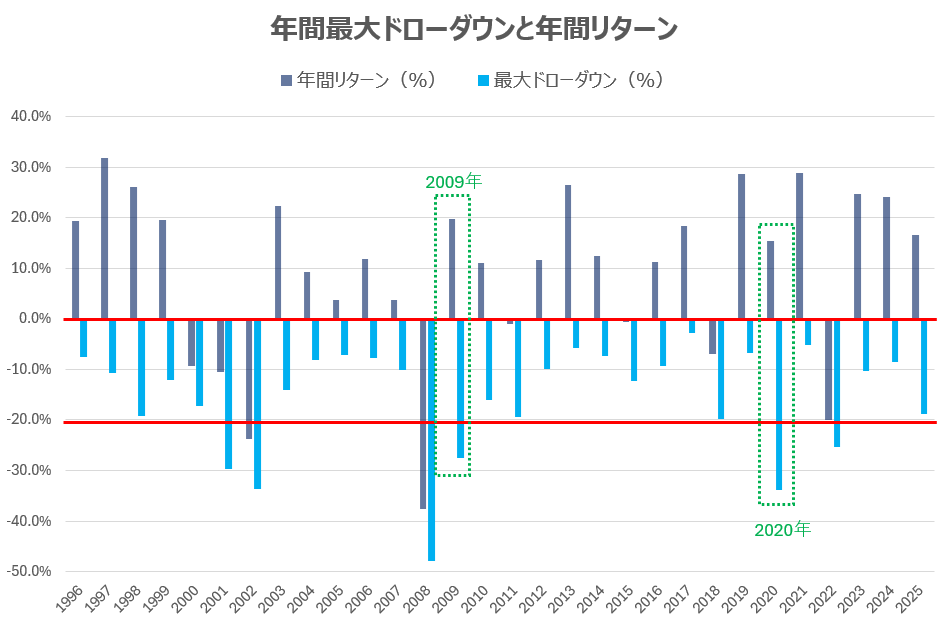 S&P 500 の大暴落とリターンの関係:年間最大ドローダウンの研究