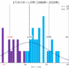 また、ヒストリカルデータから見ると5%以上のリターンが得れる確率は12.5%(40年中5年)、-5%以上の損失になる確率は、7.5%(40年中3年)と言える。